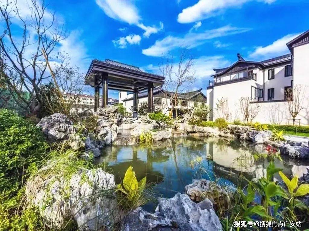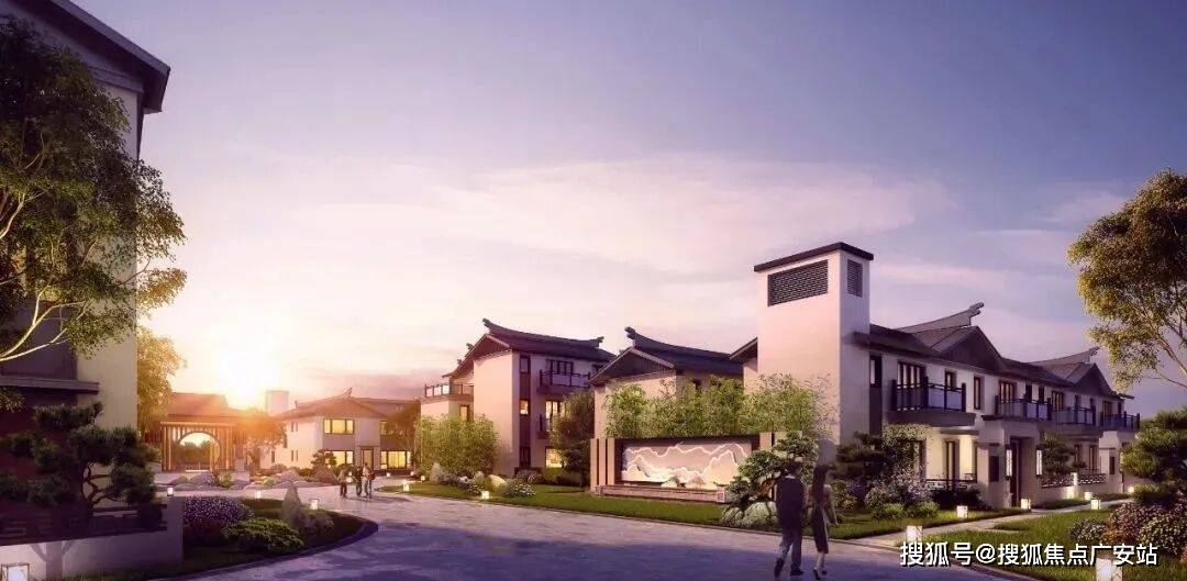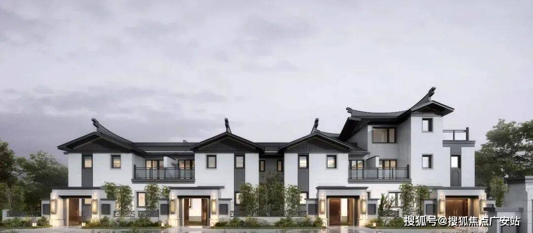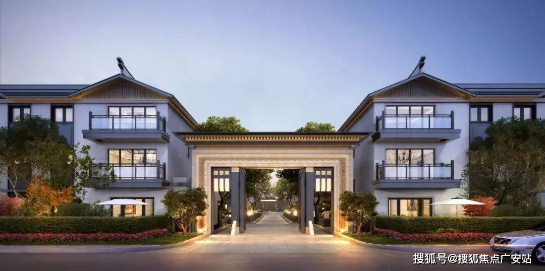 白墙黑瓦的视觉风格,中轴对称的大气格局,高地错落建筑造型,辅以亭台、叠水、乔木等中式景观布局,营造浓厚的中式宅院体验感。