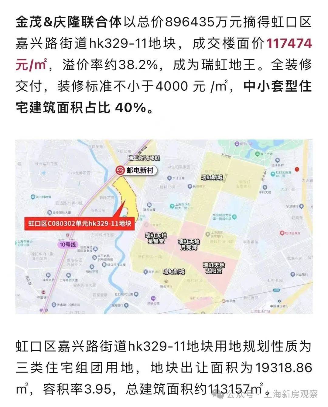 最新消息!10号线年首个地王“瑞虹地王”金茂+庆隆瑞虹项目正式定名「金茂·璞元」首开售罄,二批次加推约126-170㎡3-4房;10月18日已过会均价16.8万/㎡!2000-3000万买房必看!实景示范区现已开放,预约接待!约1700平奢享会所+1F架空层泛会所!