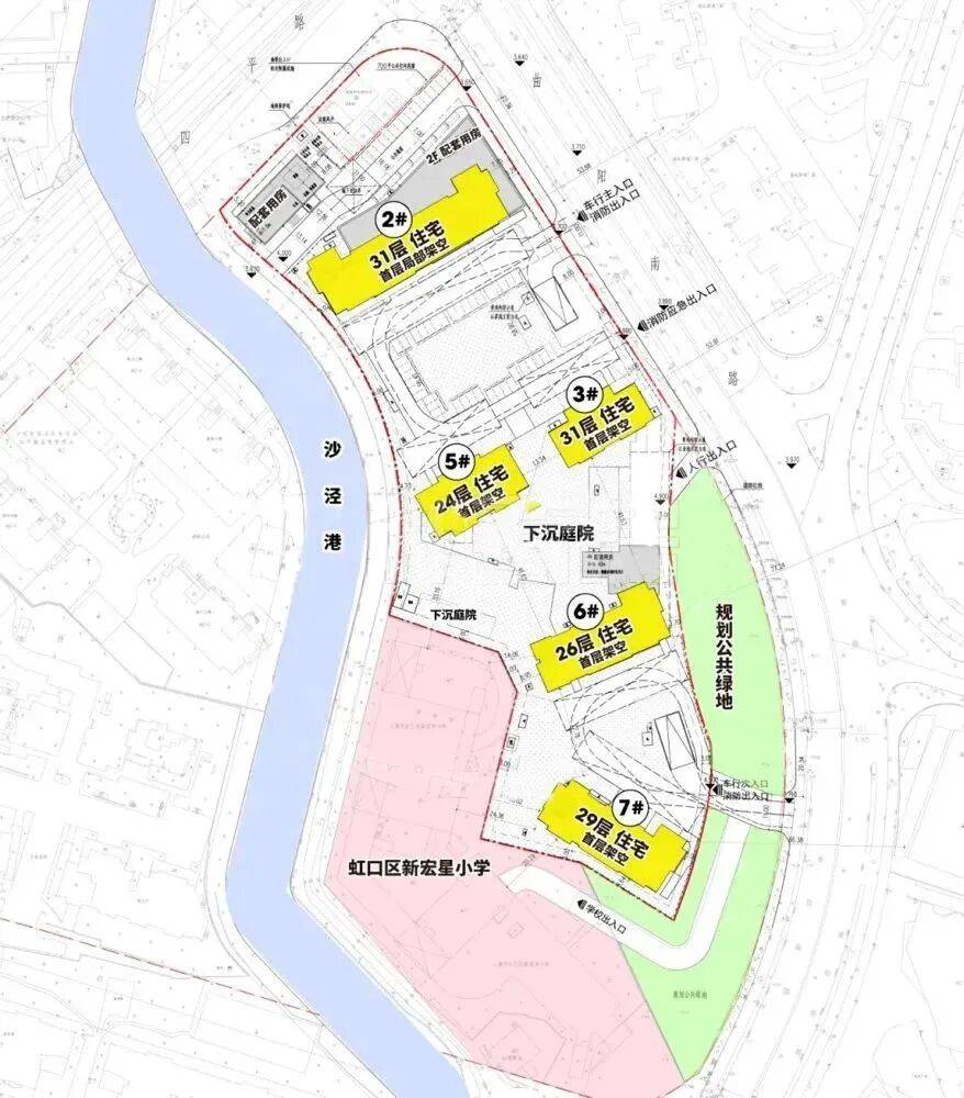 设计方案显示,项目拟建5栋24-31F高层住宅。2#首层局部架空,其余楼栋均为首层架空。社区规划了下沉庭院,人行出入口、车行出入口等位于曲阳南路。项目5栋楼全部架空,未来可能设计架空层。社区中央位置规划有大面积下沉庭院,可能会打造会所空间。