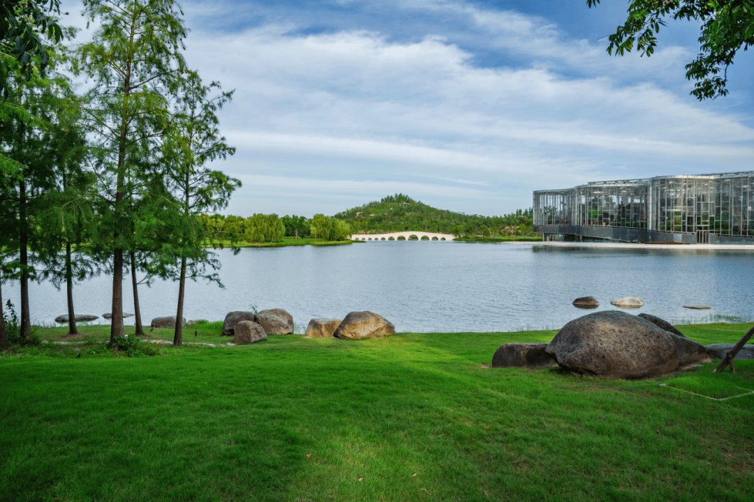 作为上海市区的“高地”,人造双子山项目,是世博文化公园最大标志性景观,建设用地面积为30万平方米,由两座高度不等的山体组成,最高峰48米,次峰37米,目前已成为大众周末休闲的打卡胜地。