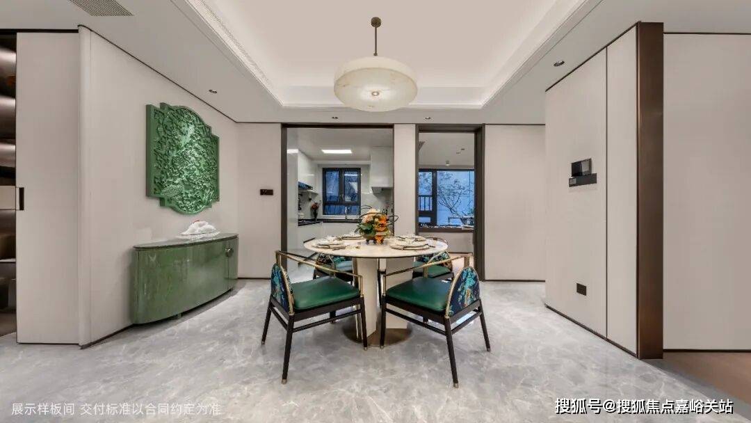 中央空调(或同档次品牌),AO史密斯/阿里斯顿地暖(或同档次品牌),及美的/格兰斯柯新风系统(或同档次品牌),多维度多空间多场景气温自调节,以360度温润呵护,打造一个充满新鲜空气的健康环境,让家中每一处空间气温都舒适随心。宽阔餐厅空间,可放置圆形餐桌,同时,预留餐边柜空间,满足更多收纳储物的需求,让质感与实用性兼具。