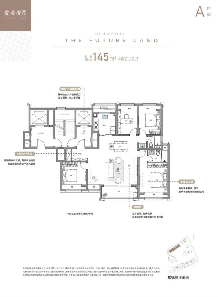 大户型均采用两梯两户配置,类独立电梯厅入户,极大提升居住私密性与尊贵感.该户型以大横厅设计搭配外接景观阳台,配合客餐厅一体化布局,将公共社交空间放大.区别于市面上同面积段常见的四房设计,该户型舍弃紧凑布局,以大三房设计保障每个房间的舒适尺度,尤其是宽敞的餐厅区域,可轻松容纳六人餐桌,为大家庭聚餐、亲友聚会提供理想场所.